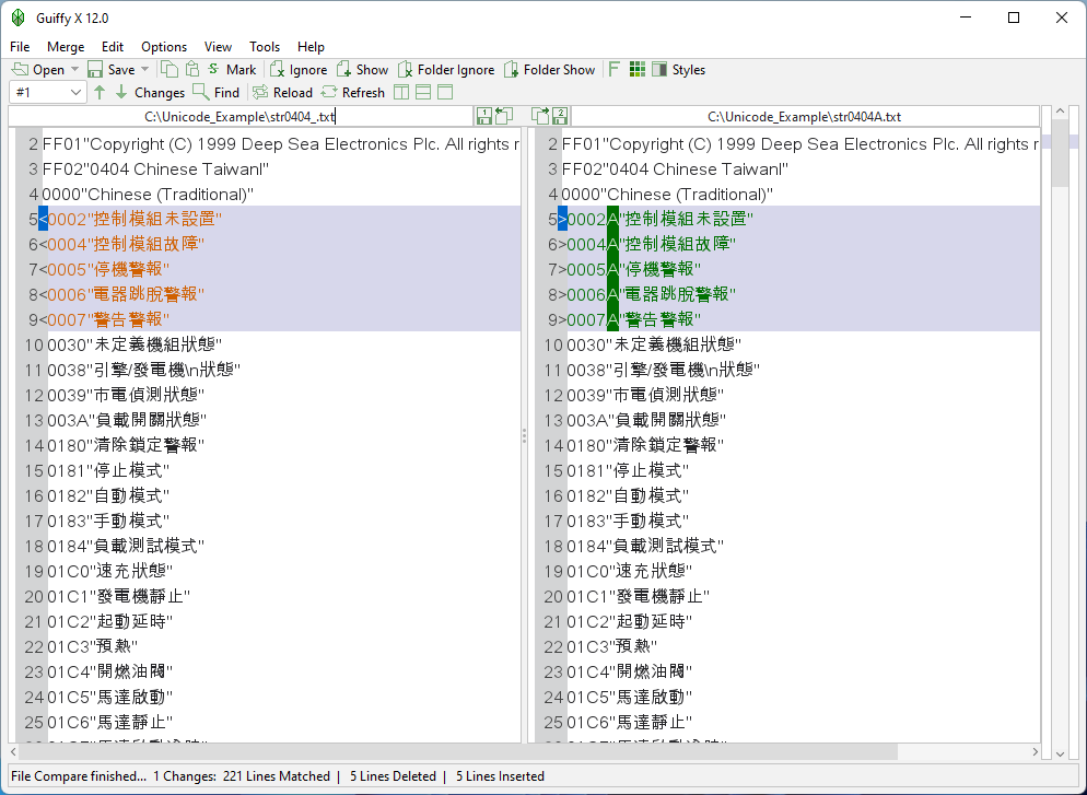 • Guiffy's visual diff tool can be used to compare source files of any type with builtin support of Unicode (UTF8 & UTF16), MBCS, SJIS, and over 150 File Encoding and character set formats.